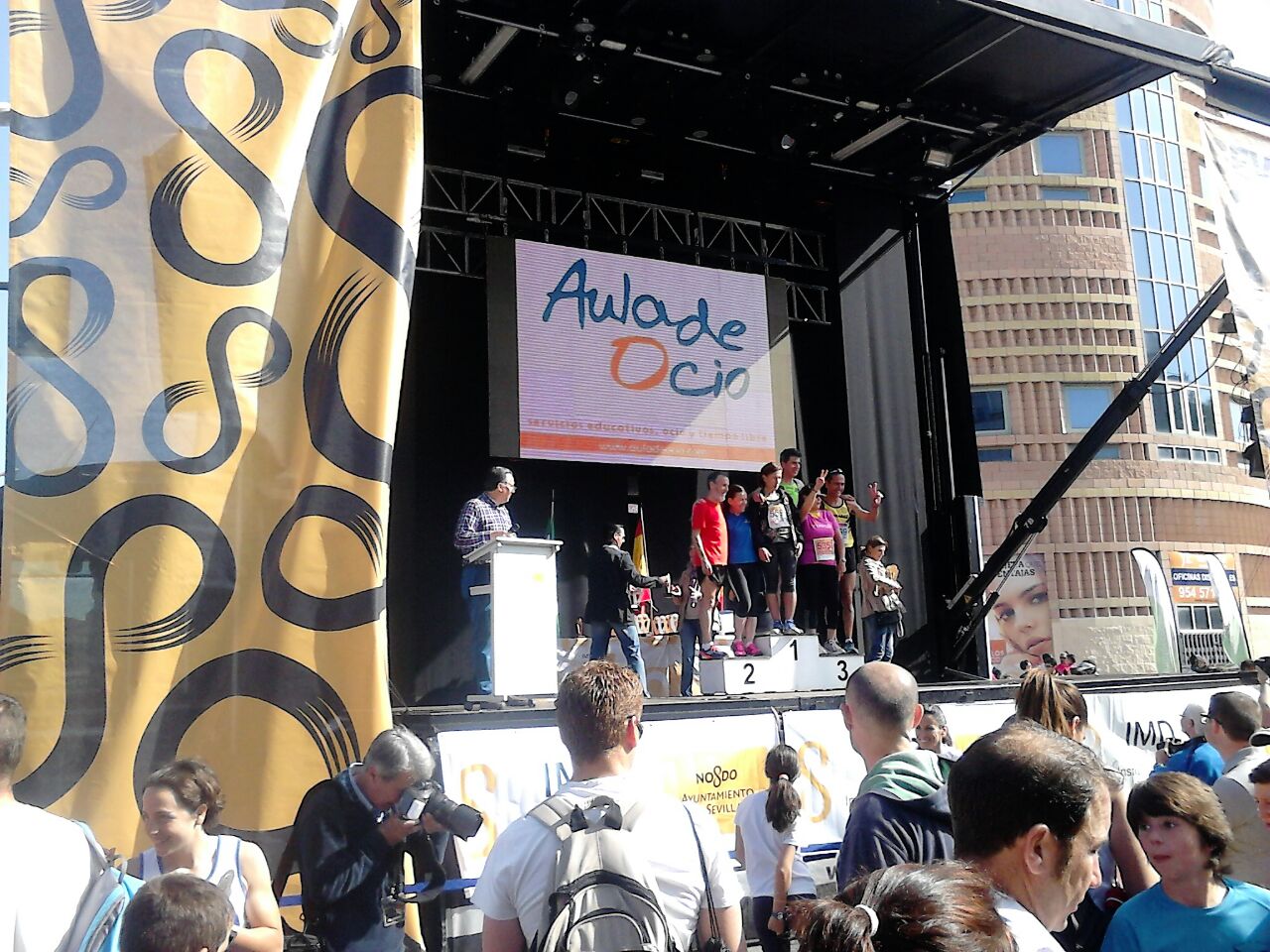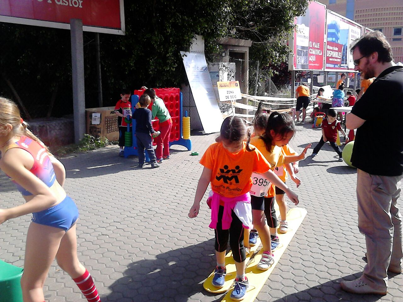 Jornada de máxima actividad para los monitores de la Zona Infantil que Aula De Ocio ha habilitado dentro de la celebración de la Carrera Popular del Distrito San Pablo-Nervión organizado por el Instituto Municipal de Deportes (IMD). El recinto dedicado al ocio de los más pequeños con juegos y actividades físicas tuvo una gran acogida por parte del público, que agradeció un espacio de esparcimiento para sus hijos.